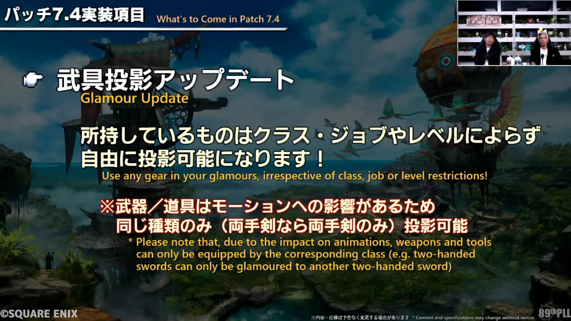 PLLで武具投影のアップデートでクラス・ジョブ、レベルも関係なく自由にミラプリできるようになるみたい。